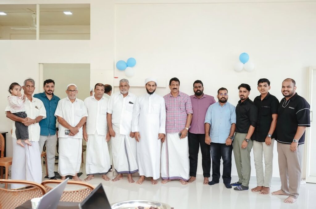 The main location is on Calicut Road, Valanchery (Near Qatar Gold), Kerala, India. Contact numbers listed include 81298-38101, 99475-57978, 95670-11769, and 97464-42992.
